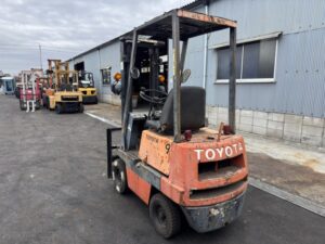 TOYOTA 2FGL9は、倉庫内作業や軽荷役に適したガソリン車フォークリフトです。揚高約3mで日常的な棚入れやパレット搬送に役立ちます。770mmフォーク仕様により小回りが利き、狭所での荷役作業にも適しており、コストを抑えた導入をご検討の方におすすめのモデルです。