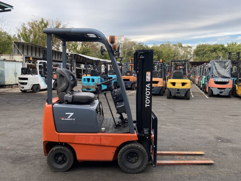 トヨタ製のガソリン式フォークリフト、0.7tクラスです。