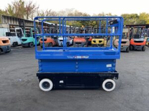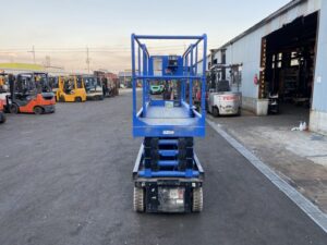 AICHI製高所作業車 SV08Bです。倉庫内や工場内での設備点検、照明交換、配線工事などの高所作業に適したモデルです。コンパクト設計で狭い通路や限られた作業スペースでも使用しやすく、屋内メンテナンス作業の効率化に貢献します。コストパフォーマンスを重視した導入に適した1台です。