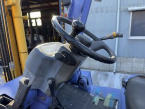 TCM FD80-2は、資材置場や物流拠点で活躍する大型ディーゼル車フォークリフトです。2段マスト仕様・揚高約3mで基本的な積載作業に対応します。ロングフォーク2420mm仕様により鉄材や建材など長尺物の運搬にも便利です。フォークシフト装備で位置調整が容易なため、現場作業の効率向上が期待できます。