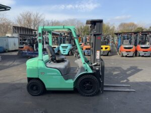 MITSUBISHI FDE20Tは、物流センターや製造現場で活躍するディーゼル車フォークリフトです。稼働時間が少なく、導入後も安定した運用が期待できます。3段フルフリーマスト仕様・揚高約5mにより高所棚への荷物配置やラック保管が可能で、積載スペースの最大活用につながります。入出庫作業や重量物搬送を効率化したい現場におすすめです。