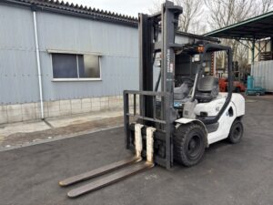 2014年式コマツ製ディーゼル車フォークリフトです。2段マスト仕様・揚高約4mで中高段ラックへの棚入れや積み上げ作業に対応します。爪長さ1370mmで長めのパレットや大型荷物の搬送にも適しています。サイドシフト付きで荷物位置の微調整が容易なため、物流倉庫や資材置場での作業効率向上に貢献するBランク車両です。