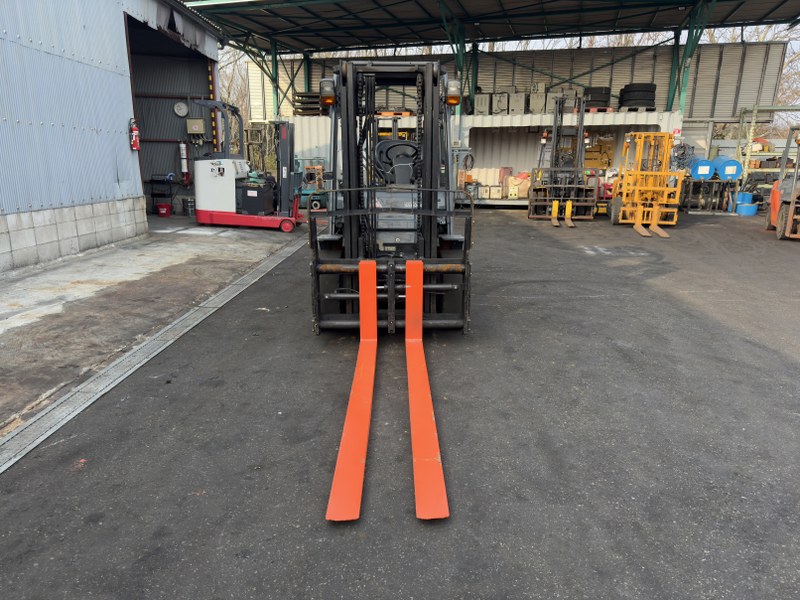 TOYOTA 02-8FD30は、物流センターや資材置場で活躍するディーゼル車フォークリフトです。揚高約3mの2段マスト仕様で基本的な棚入れやトラック荷役を安定して行えます。ロングフォーク2040mm仕様のため、鉄材や建材など長尺物の取り扱いにも便利です。現状での導入をご検討の際はぜひご相談ください。