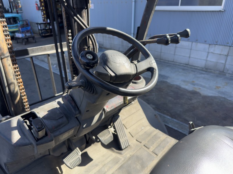 TOYOTA 8FD35は、物流センターや資材置場で活躍するディーゼル車フォークリフトです。揚高約3mの2段マスト仕様で棚入れや出荷準備作業を安定して行えます。サイドシフト装備により位置合わせが容易で、入出庫業務をスムーズに進められます。現場実用性を重視した導入に適した1台です。
