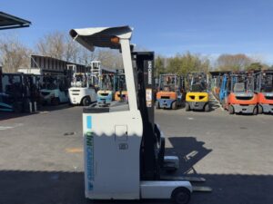 UNICARRIERS FRB9-8CAは、屋内倉庫や小規模物流センターで活躍するバッテリー式リーチ車両です。揚高約3mの2段マスト仕様で日常的な棚入れや構内搬送を効率化できます。770mmフォーク仕様のため取り回しが良く、ピッキングエリアや狭所作業に適した1台です。コストパフォーマンスを重視した導入にもおすすめです。