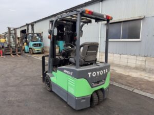 TOYOTA 7FBE10は、屋内倉庫や工場内で活躍するバッテリー式フォークリフトです。作業環境に配慮した仕様で、構内搬送や軽作業に使いやすい車両です。揚高約3mの2段マスト仕様により日常的な荷役業務を安定して行えます。サイドシフト装備で位置合わせも容易なため、入出庫業務の効率化に貢献します。