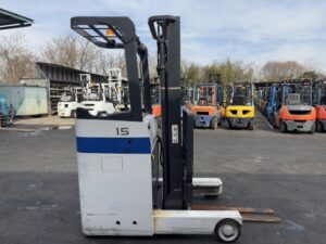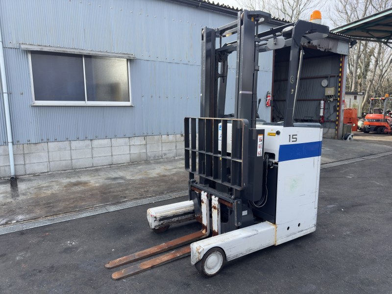 2015年式ニチユ製バッテリーリーチフォークリフトです。倉庫内作業や物流センターでの入出庫業務に適しており、狭い通路でも扱いやすい操作性を備えています。2段マスト仕様・揚高約3.5mで中高段ラックへの棚入れや積み上げ作業にも対応可能です。爪長さ1070mmで幅広いパレット搬送に使用でき、コストパフォーマンスに優れたBランク車両です。
