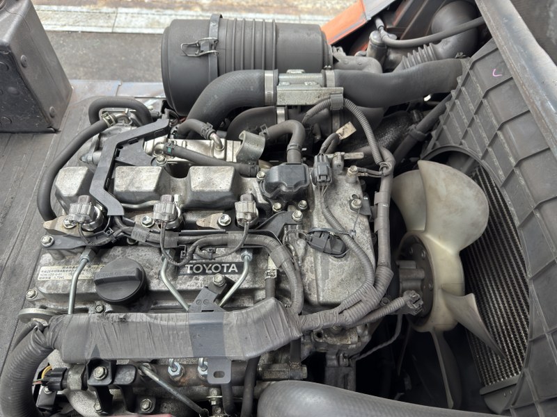 トヨタ製ディーゼルフォークリフト 02-8FD25のご紹介です。揚高約3mで入出庫作業や構内搬送に使いやすいモデルです。回転フォーク付きのため荷物の向きを変える作業や内容物の排出にも対応でき、現場の作業効率向上につながります。物流倉庫や製造現場で活躍する実用的なフォークリフトです。