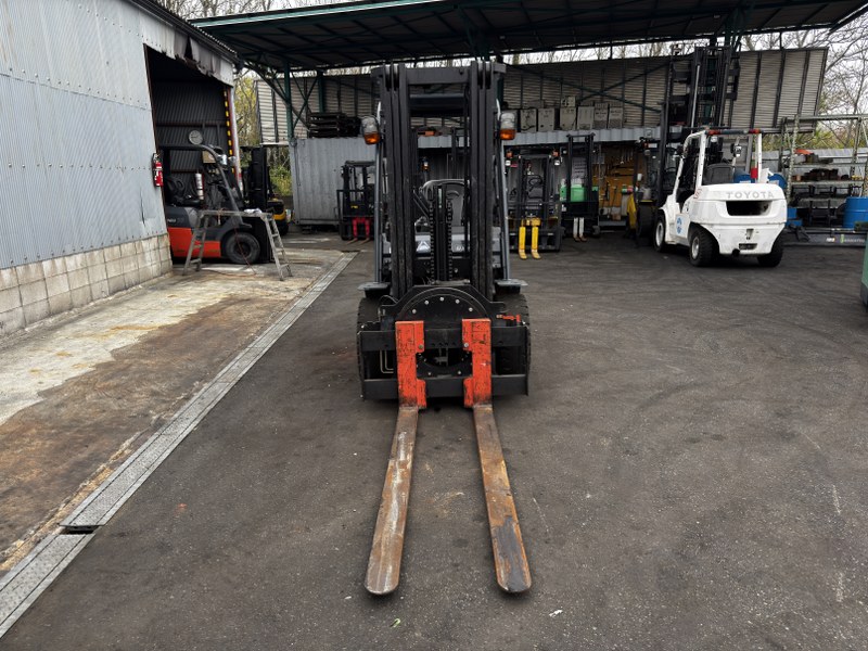 まず注目すべきは、3段フルフリーマスト。天井の低い場所でもマストを伸ばさずにフォークを上下でき、最大で4.5mの高さまで到達します。コンテナ内や屋内倉庫の入り組んだ場所での高所作業に最適です。