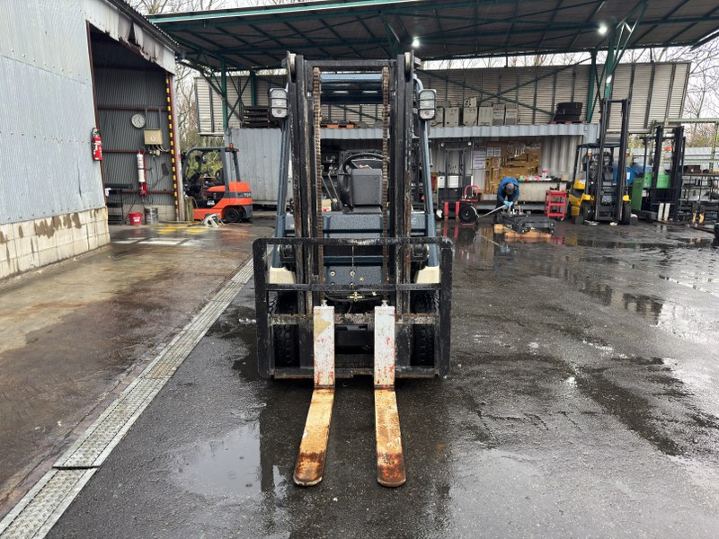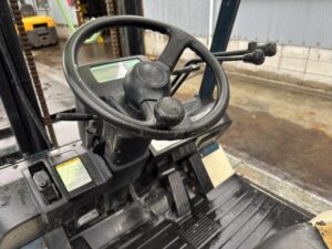 2003年製ではありますが、アワーメーターは3006時間と、年数を考えると非常に稼働が少ない希少な個体です。バッテリー車のため排気ガスが出ず、音も静かなので、屋内倉庫や店舗裏などでの作業に最適です。爪の長さは920mmの短爪仕様となっており、狭い通路での切り返しやコンパクトな荷役において、抜群の取り回しやすさを発揮します。