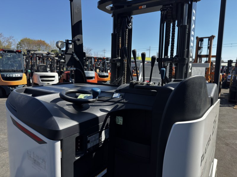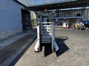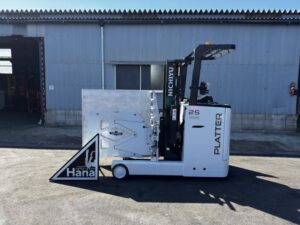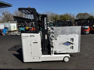 ニチユ製バッテリーリーチフォークリフト FBR25-H85-296SCCのご紹介です。揚高約2.9mで入出庫作業や構内搬送に使いやすいモデルです。ベールクランプ付きのため古紙や圧縮ダンボールなどをしっかり挟んで運搬でき、作業の幅が広がります。物流倉庫や資材置場、リサイクル業で活躍するフォークリフトです。