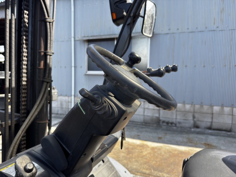 フォークを上下に大きく傾けられるヒンジドフォークは、丸太や鋼管の保持、バケット作業に最適。さらに、運転席から爪幅を自在に操れるフォークシフトにより、重たい大型の爪を動かす苦労もありません。マストは標準より高い4.0m仕様で、高所への積み込みも余裕です。