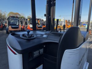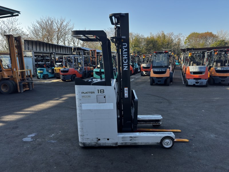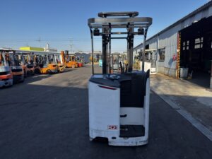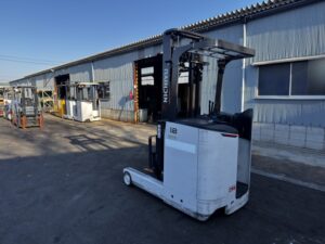 ニチユ製バッテリーリーチフォークリフト FBRM18-85-400です。揚高約4mで倉庫内の棚入れや高所ラックへの荷物の出し入れに対応します。1070mmフォーク仕様で標準パレットにも扱いやすく、安定した荷役作業が可能です。物流倉庫や配送センターでの入出庫作業に活躍する状態良好な1台です。